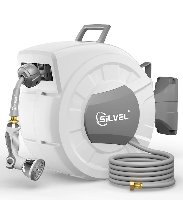 Silvel Retractable Garden Hose Reel, 1/2 in x 100 ft Wall Mounted Garden Hose Reel, with 10 Pattern Nozzle, Any Length Lock, Slow Return System, 180&#