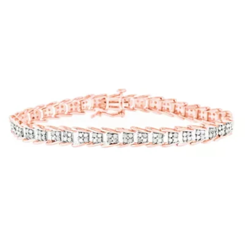 STUNNINGLY UNIQUE – What sets this sterling silver bracelet apart is the way each intricately detailed link fans out for a dramatic effect. The nested links provide a seamless look that sits elegantly against the wrist. Each diamond is set in a miracle plate that makes the diamond look bigger, multiplying the sparking and achieving the look of bigger diamonds. This bracelet has over 150 rose-cut diamonds, natural and beautiful stones that are I3 clarity, on the far end of the diamond clarity scale, and may be cloudy in nature with natural inclusions visible to the naked eye. Box clasp, 156 Color rating: I Clarity rating: I3 Polished finish Prong setting Warranty available, Limited liability warranty, 60 IN Imported Product Specifications 178 x 5 x 5 2 Material & Care Sterling silver Metal, Sterling silver Clean with a soft cloth.
