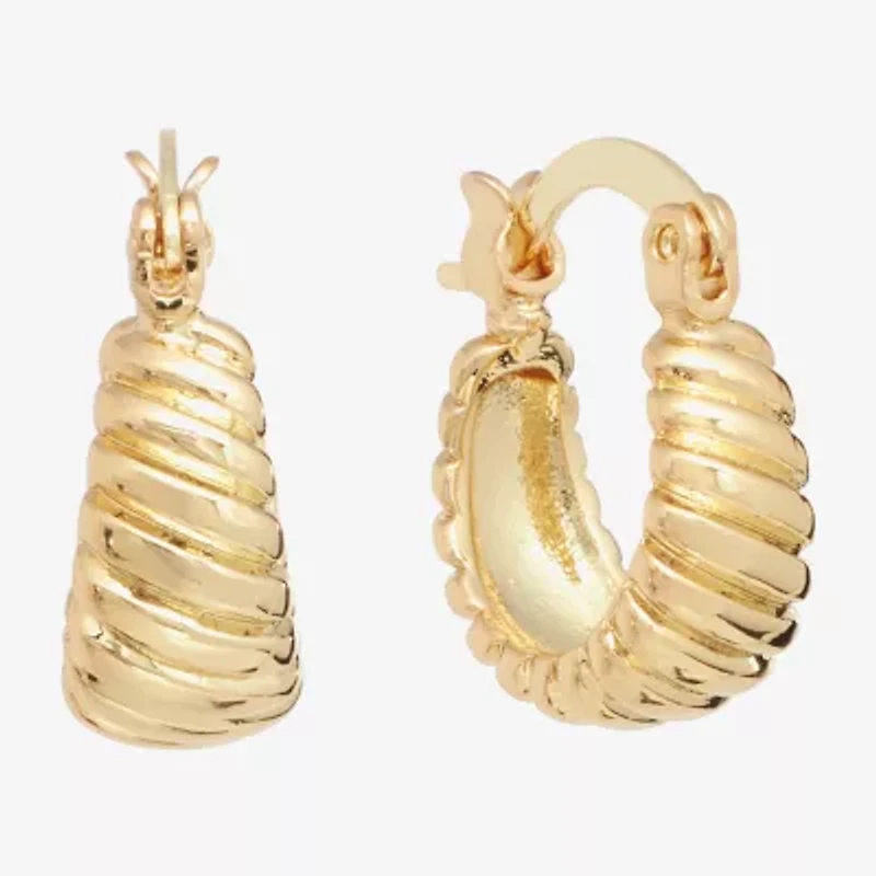 Silver Reflections Huggie Ribbed Womens 13mm Hoop Earrings