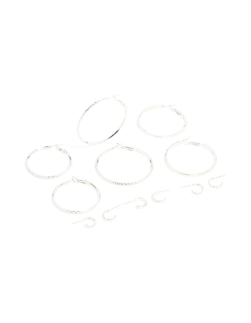 Silver Textured Hoop Earrings 6-Pack in Franklin, TN