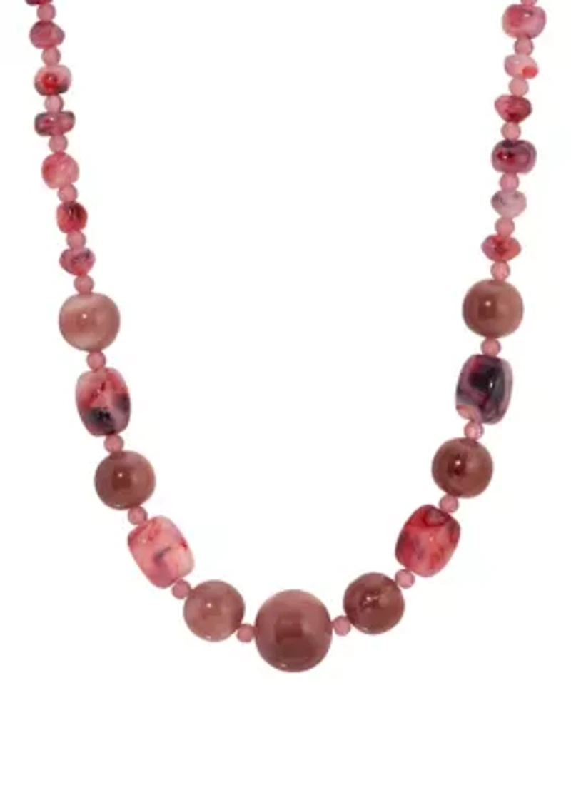 An artful array of irregularly shaped amethyst-colored beads lends this strand an organic elegance, each stone revealing soft variations in tone and texture. Petite round accents are thoughtfully spaced between, creating a gentle rhythm and a subtle handcrafted character. Earthy yet refined; the composition offers a graceful wash of color with effortless sophistication. Lobster closure, 25 Polished finish USA Imported Product Specifications 15"L X .6"W X .6"H, 15" Material & Care Metal, Gold-tone metal Clean with a soft cloth.