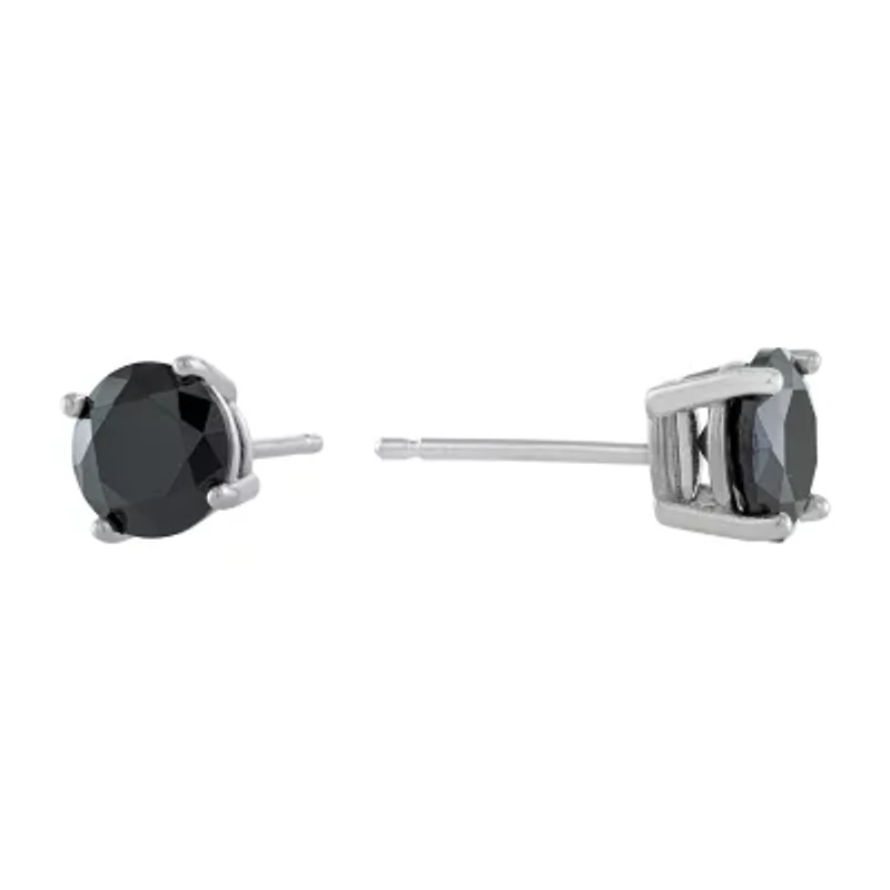 Silver Treasures Black Cubic Zirconia Sterling Silver 7mm Stud Earrings