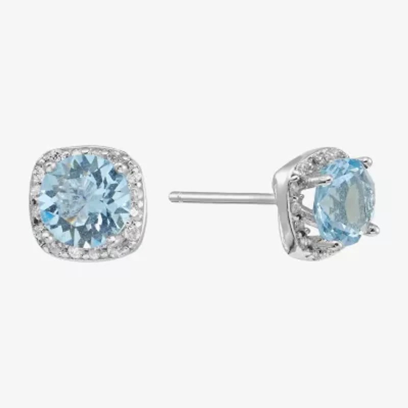Silver Treasures Blue Crystal Halo Sterling Silver Stud Earrings in Franklin, TN