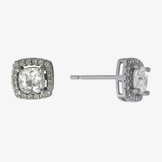 Silver Treasures Cubic Zirconia Sterling Silver 7.8mm Square Stud Earrings