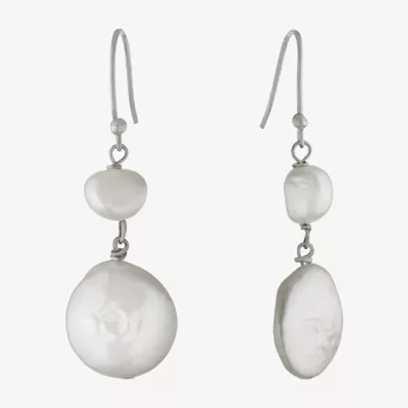 Silver Treasures Cultured Freshwater Pearl Womens White Sterling Silver Drop Earrings