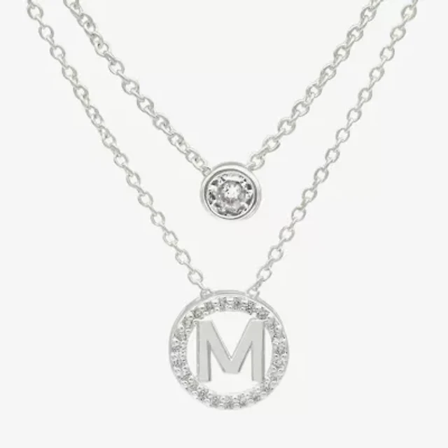 Silver Treasures Delicates Initial Womens Cubic Zirconia 2-pc. Necklace Set