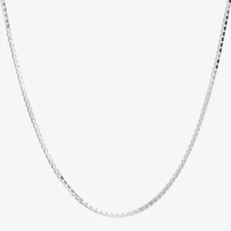 Sparkle and shine best describes this silver treasures sterling silver box chain necklace. Necklace is crafted in quality sterling silver, available in 16, 18, 20, 24 or 30 inches length, solid box chain construction and has a spring ring clasp closure. Wear this chain necklace alone or stacked with other favorites in your jewelry collection. Wipe chain necklace clean with a soft cloth.