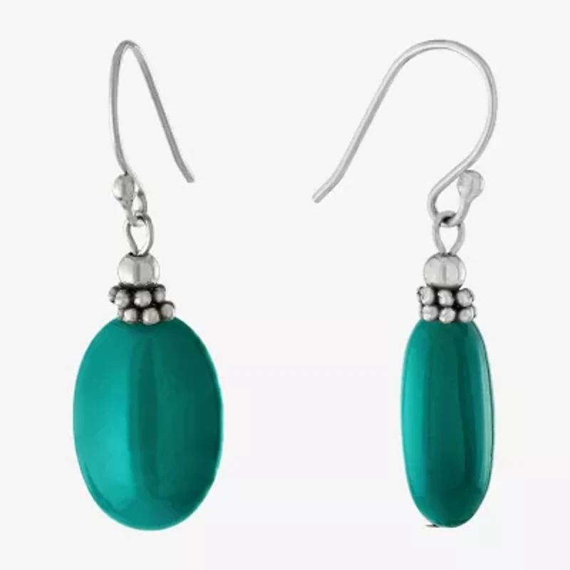 Silver Treasures Simulated Womens Blue Turquoise Sterling Silver Oval Drop Earrings