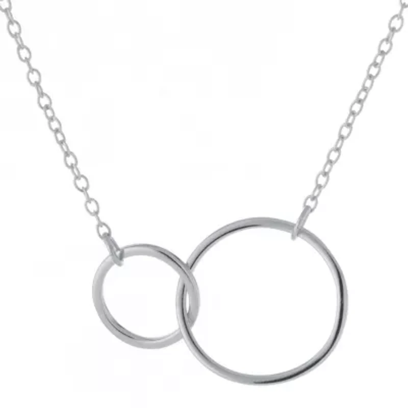 Add a trendy look to any wardrobe choice by adding this silver treasures sterling silver 16 inch double circle pendant necklace. Necklace is crafted in quality sterling silver, 16 inches in length with a 1 inch extender and has a spring ring clasp closure. Stack this necklace with other favorites in your jewelry collection or wear alone. Wipe necklace clean with a soft cloth.