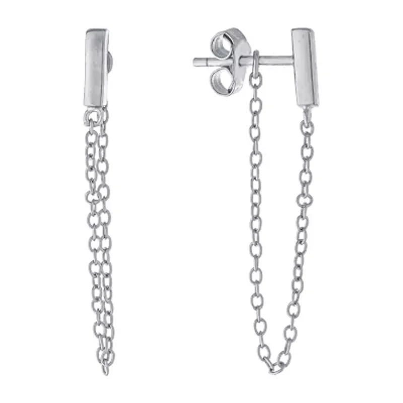 Simple and sleek best describes these Silver Treasures Sterling Silver rectangular drop earrings. Earrings are crafted in quality Sterling Silver, 29.5mm in length and have a post backing for a safe and comfortable wear. With the simple design, these drop earrings can be worn with any wardrobe choice. Wipe earrings clean with a soft cloth.