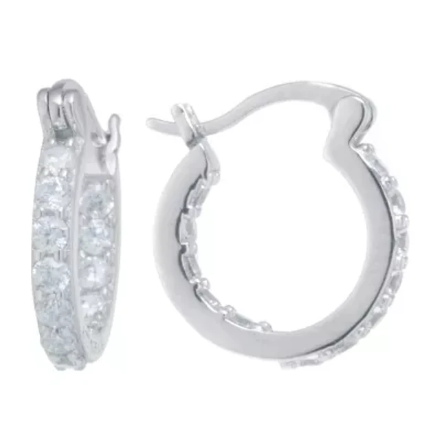Silver Treasures Womens Cubic Zirconia Sterling Silver 11.5mm Hoop Earrings