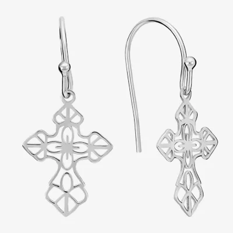 Silver Treasures Womens Sterling Silver Cross Drop Earrings