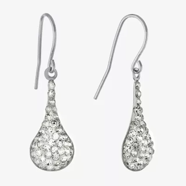 Silver Treasures Womens Crystal Sterling Silver Drop Earrings