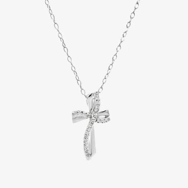 Womens White Cubic Zirconia Sterling Silver Cross 18 Inch Pendant Necklace