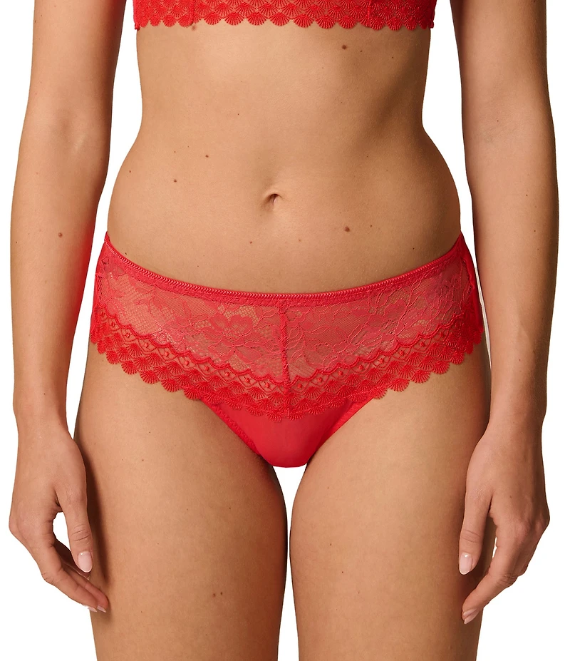 From Simone Perele, this panty features: Low-rise boyshort Partial-coverage back Lace front with scalloped embroidery at thighs Lined tulle panel at the panty line Cotton gusset Polyamide/polyester/elastane Hand wash Imported.
