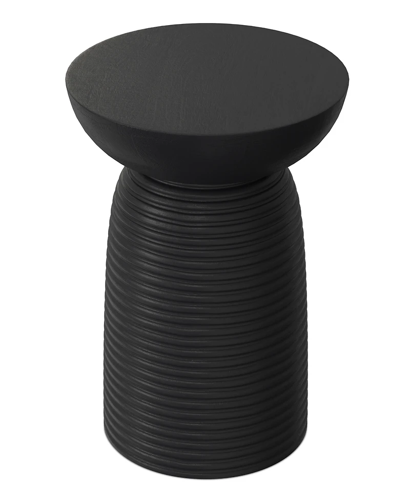 The Boyd 13 Inch Ribbed Accent Table in Black features handcrafted solid mango wood and a striking ribbed design with a low-voc, water-based lacquer finish. Its compact 12.6"" round top and 17.7"" height make it ideal as a side table, nightstand, plant stand, or display piece.
