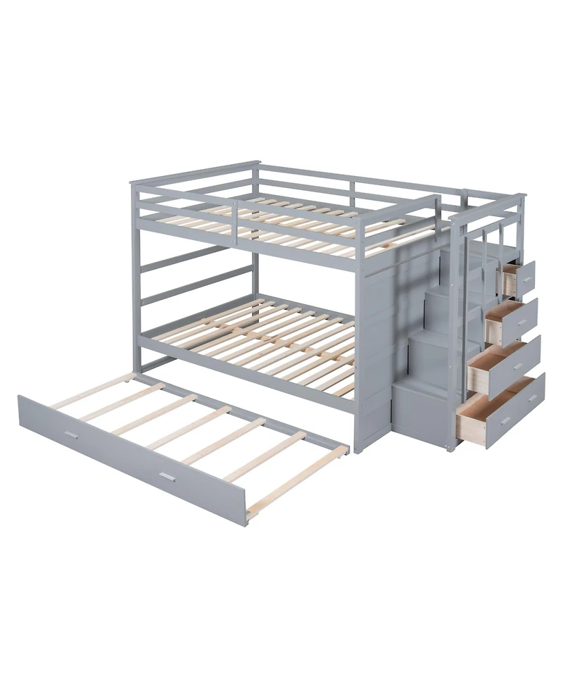 Simplie Fun Full Over Full Bunk Bed With Twin Size Trundle And Staircase