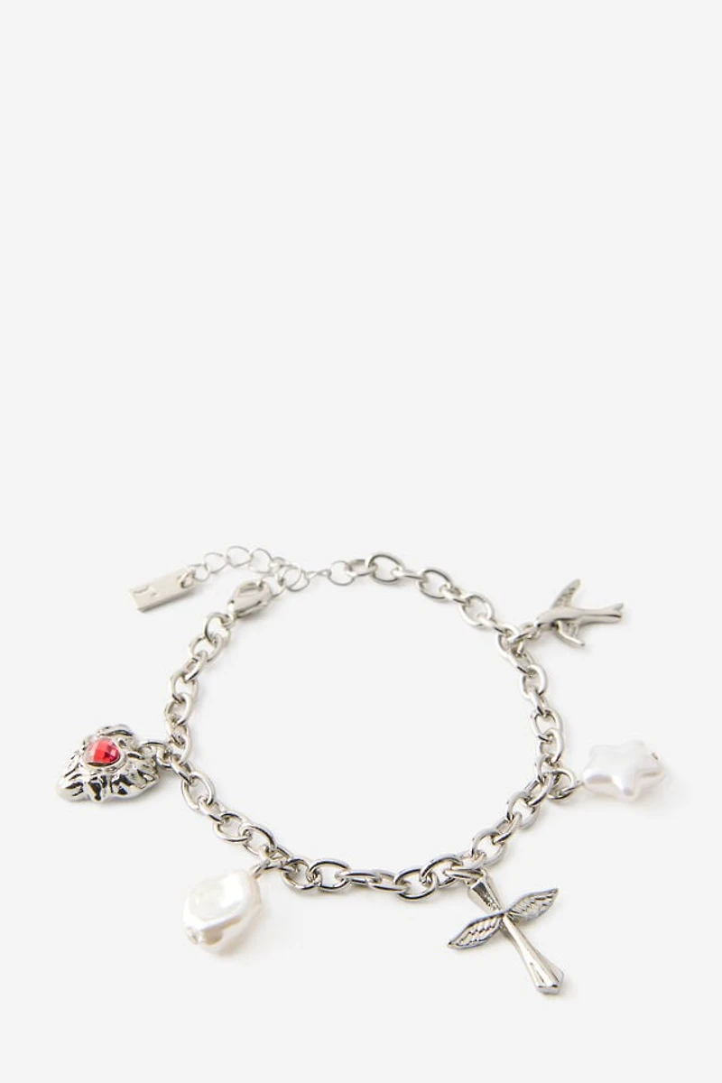 Simple, stylish, and made for your everyday. The Single Bracelet features a Y2K-inspired design with cross charms and a rolo chain style. Crafted with zinc and steel, it's the perfect way to add a nostalgic edge to any look. Style it solo or stack it up.