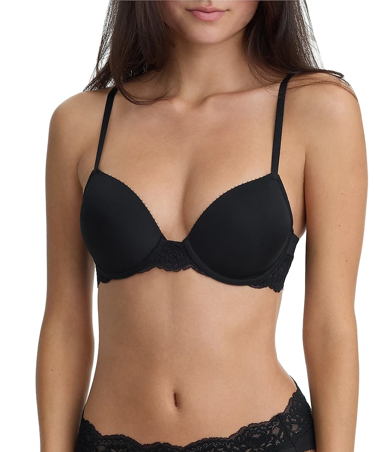 From Skarlett Blue, this bra features: Convertible T-Shirt bra Lightly lined stretch foam cups for natural shaping Soft matte jersey fabric creates a seamless look under clothing Delicate floral lace trim at bottom center and back Picot-trimmed neckline Fully adjustable convertible straps can be worn regular or crisscross Hook & eye back closure Nylon/elastane/polyester Hand wash Imported.