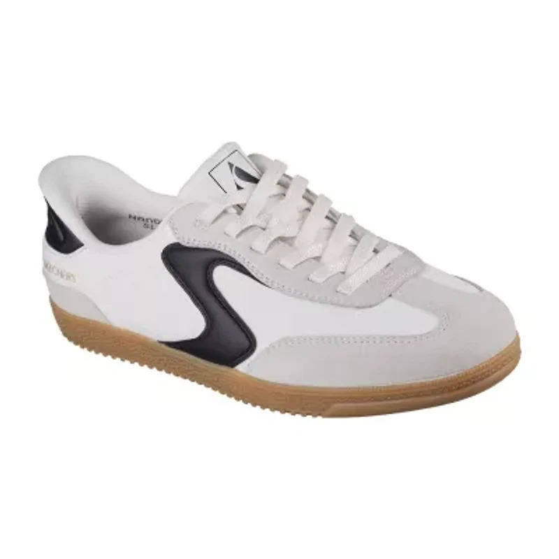 Step up your casual style with these Skechers Hotshot women's sneakers. Made from a faux leather-blend, they feature a retro-inspired silhouette, memory foam insoles, a lace-up front, and an easy slip-on design.