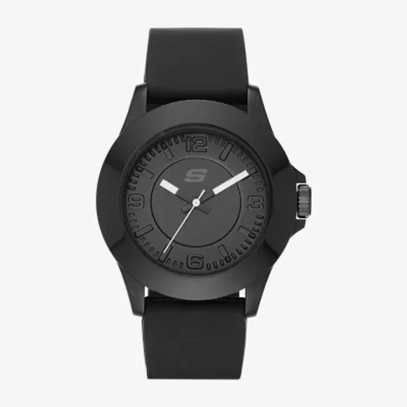 The Skechers Rosencrans midsize watch is perfect for the fashion savvy and those on-the-go. Casual and sporty, it features a blackout design with smooth silicone strap and white pop color hands, making it the must-have "athleisure" timepiece.