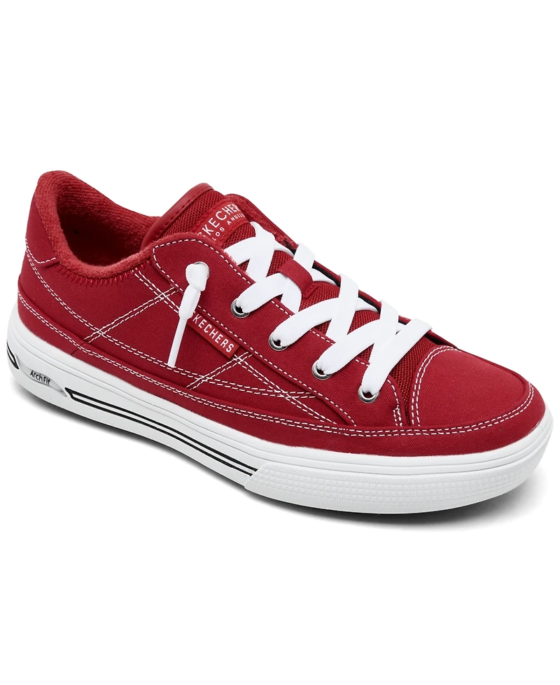 Easygoing allure and calming comfort combine in these Skechers Women's Skechers Street Arch Fit Arcade - Arcata Casual Sneakers. Crafted with a durable canvas upper, this simplistic silhouette features decorative laces and is equipped with a foot-molding Arch Fit insole and an impact-softening cushioned midsole.
