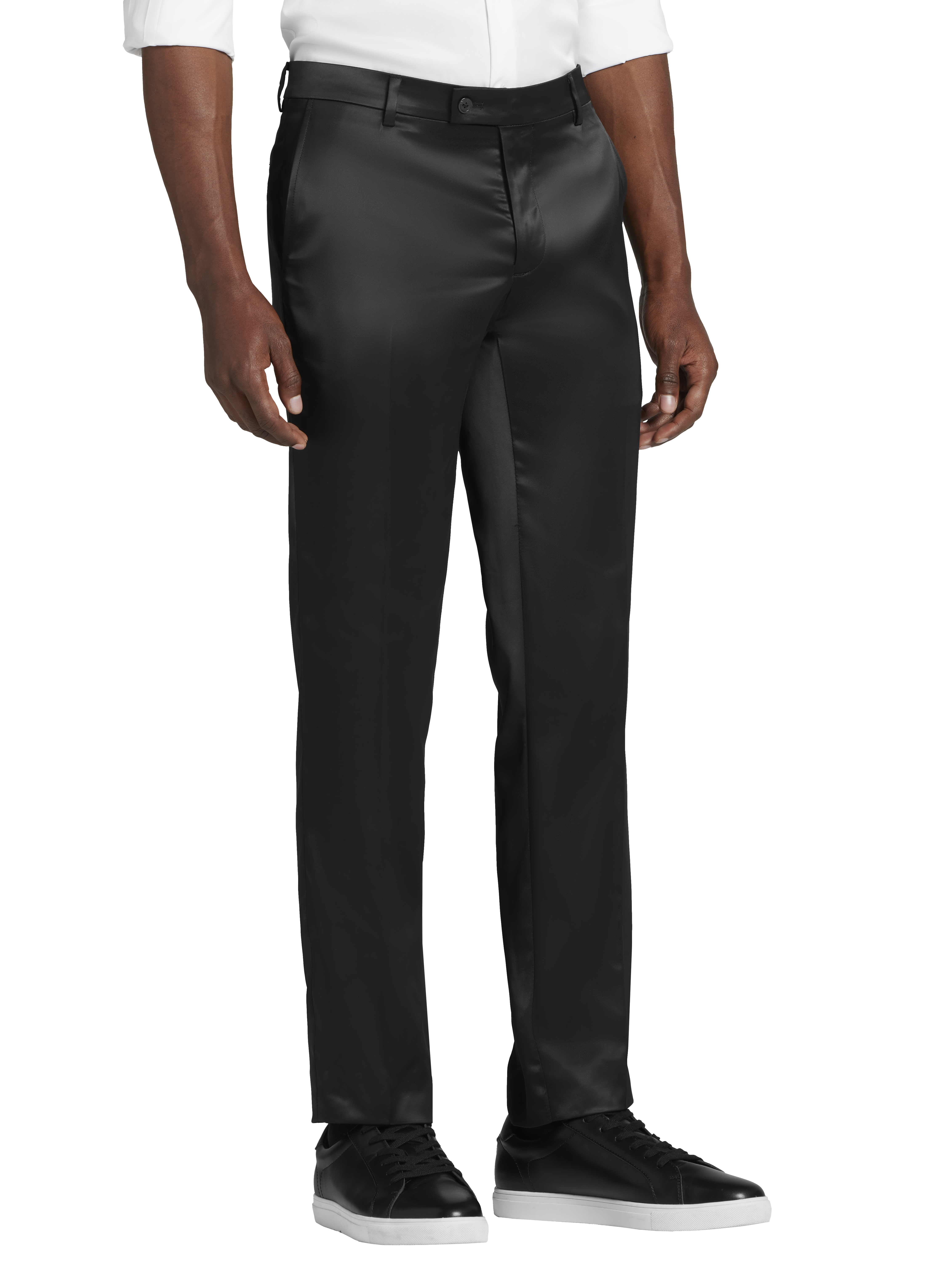 These pants are a modern choice for sharp, tailored style. Featuring a trim flat-front and a subtle sheen, they have a polished look perfect for formal occasions or elevated evening wear. The Skinny Fit ensures a streamlined silhouette, while the suit separates design allows for customizable pairing with a matching or contrasting vest and jacket. Comfortable and stylish, they're a go-to for the perfect fitno alterations required.