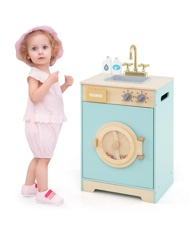 Skonyon Wooden Kids Laundry Playset with Washer, Sink, and Accessories