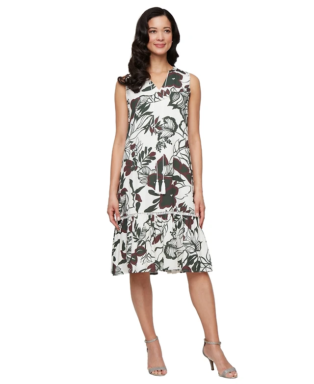Sl Fashions Women's Printed Tea-Length Midi Dress