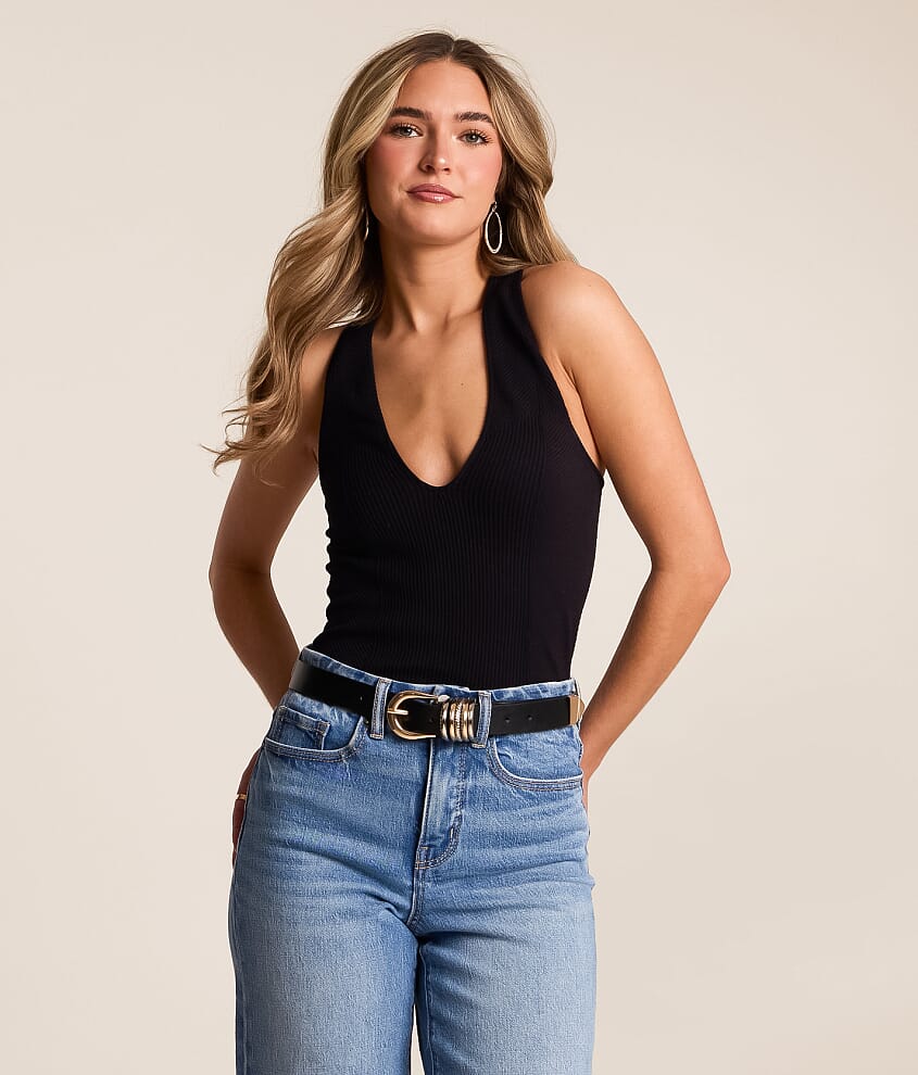 Ribbed deep v-neck racerback tank Bust measures 26" on size XS/S Body length 22" on size XS/S