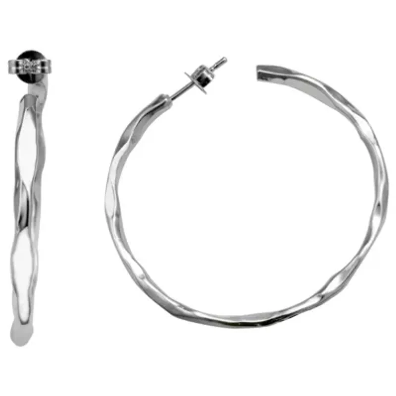 Sleek sterling silver hoops give your look a dose of drama.