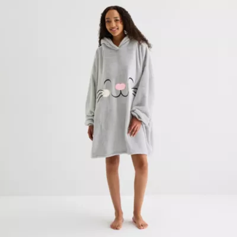 This Sleep Chic women's fleece nightgown is a cute, cozy pieceto keep you warm in colder weather. Cut for an oversized-fit that fits most, it's made from a soft plush fabric, with a hooded neck and side pockets.