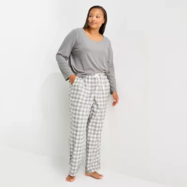 Liz Claiborne Womens Rib Long Sleeve 2-pc. Plus Pajama Sets