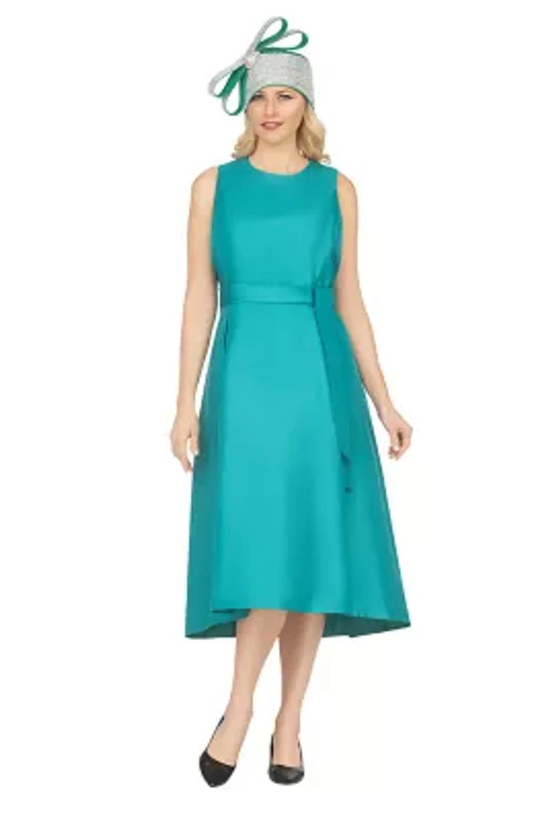 Confidence is quiet. Elegance is effortless. This beautifully tailored A-line dress is designed for the woman who carries herself with poise and purpose. Featuring a clean sleeveless neckline, a softly structured bodice, and a flowing high-low hem, it creates a silhouette that is both flattering and unforgettable. The defined waist sash enhances the natural shape while the full skirt moves gracefully with every step. Whether styled in classic black, radiant emerald, vibrant turquoise floral, or luminous white, this piece transitions seamlessly from Sunday service to weddings, luncheons, and special celebrations. It’s more than a dress — it’s a statement of grace, strength, and timeless beauty. Zip closure Crew neck Sleeveless Imported Product Specifications 50 1/2 Material & Care Polyester Dry clean only