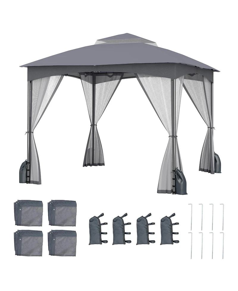 Create a comfortable and protected outdoor space with this patio gazebo canopy, designed with mesh walls and included sandbags for added stability. Perfect for backyards, gardens, patios, or outdoor events, it offers a shaded retreat while keeping insects out. The breathable mesh walls allow for airflow and visibility, creating a cool and inviting environment. The included sandbags help secure the structure, providing extra support in windy conditions. Crafted from durable, weather-resistant materials, this gazebo is built for reliable outdoor use. Ideal for gatherings, dining, or relaxing, it combines functionality, comfort, and convenience for any outdoor setting.