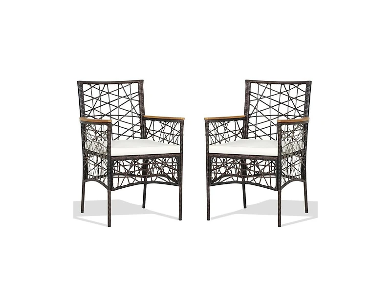 Slickblue 2 Pieces Pe Wicker Patio Bistro Dining Chairs with Acacia Wood Armrests and Cushions