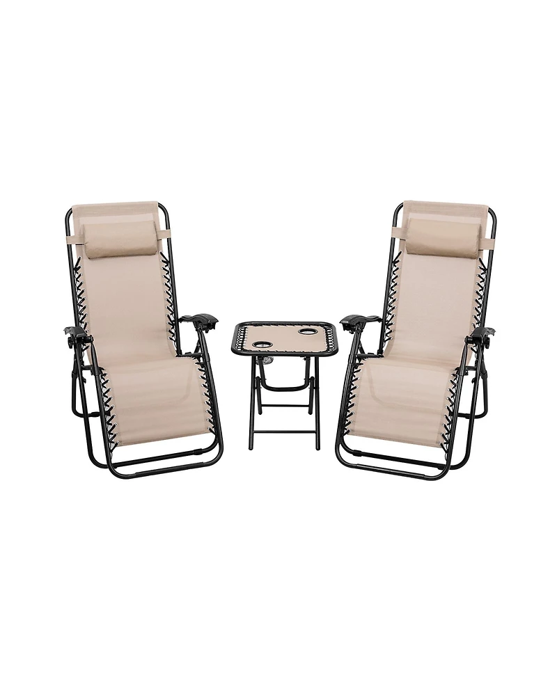 Slickblue 3 Pieces Folding Portable Zero Gravity Reclining Lounge Chairs Table Set