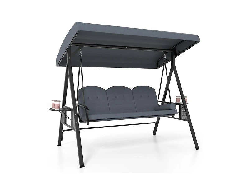 Slickblue 3 Seat Patio Swing with Adjustable Canopy and Trays