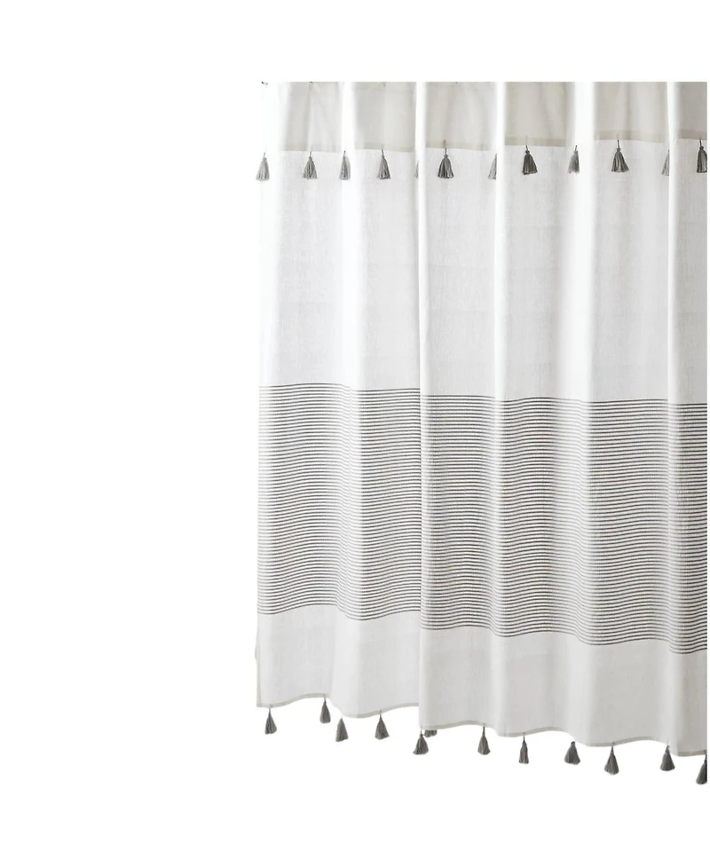 Add a touch of texture and style to your bathroom with this 72-inch Stripes Cotton Shower Curtain with Tassels. Crafted from soft, durable cotton, it features a subtle striped pattern accented with decorative tassels for a refined, handcrafted look. The breathable fabric allows for smooth draping while providing everyday functionality, and it s easy to care for with machine wash ability. Ideal for enhancing both contemporary and classic bathroom decor, this curtain combines style, comfort, and practicality in one elegant design.