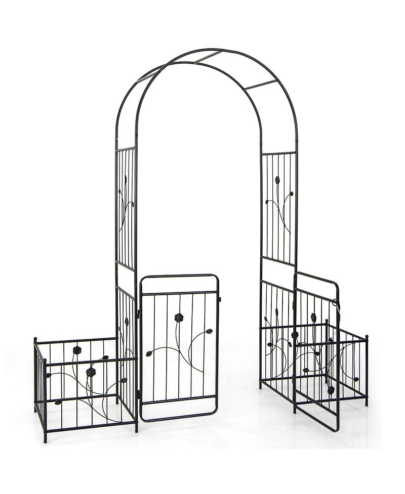 Slickblue 87 Inches Garden Arbor with Lockable Gate Side Planters-Black