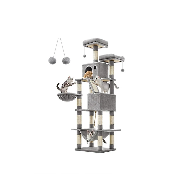 Aostirmotor 68.5" Cat Tower with Cat Condos Scratching Post in Light Grey