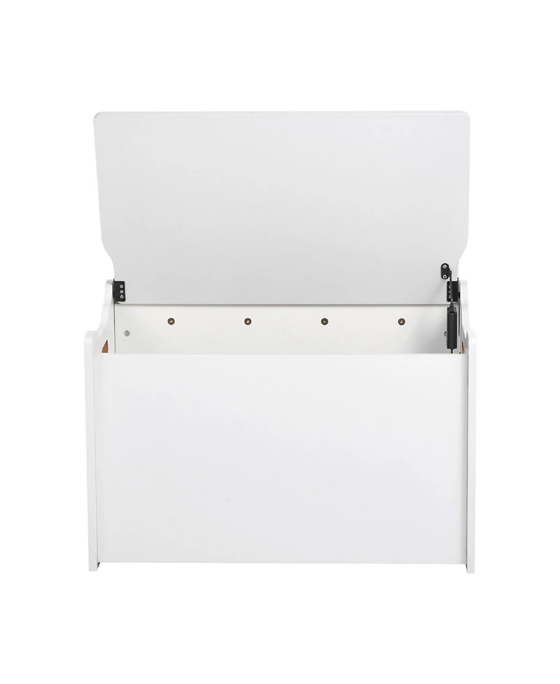 Add charm and functionality to your child s space with this wooden kids storage bench, designed to provide comfortable seating and generous hidden storage in one compact piece. Measuring 23.5 x 14.5 x 21.46 inches, it fits perfectly in playrooms, living rooms, or entryways without taking up excess space. The supportive backrest offers added comfort, making it a cozy spot for reading or putting on shoes. A spacious interior toy box keeps books, toys, and everyday essentials neatly tucked away, while the safety hinge ensures smooth, controlled lid closure to help protect little fingers.