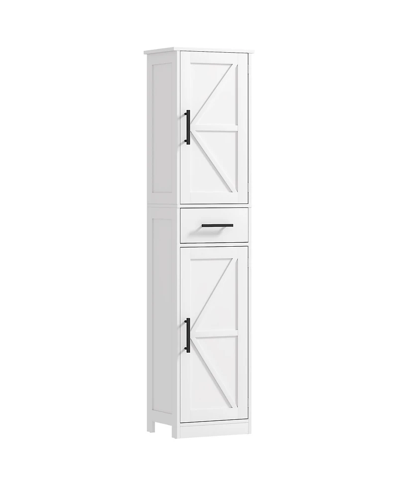 Discover the charm of farmhouse aesthetics with the tall and narrow bathroom storage cabinet from Homcom. This bathroom cabinet features enchanting barn doors with T-bar handles, creating a cozy and rustic vibe.