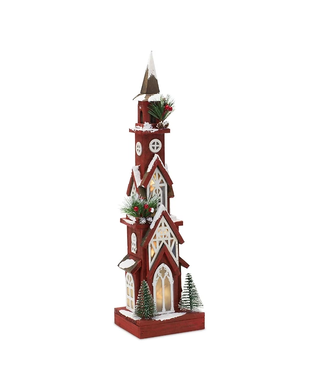 Slickblue Lighted Winter Church Display With Pine Accents And Snowy Finish
