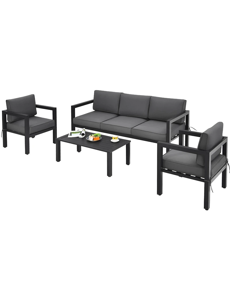 Create a comfortable and inviting outdoor living space with this 4-piece outdoor furniture set designed for backyard and poolside relaxation. The coordinated set provides ample seating and a functional table, making it ideal for casual conversations, entertaining guests, or unwinding outdoors. Built with durable, outdoor-ready materials, it s designed to withstand everyday use while maintaining its style and comfort. Perfect for patios, decks, gardens, or pool areas, this furniture set combines practicality, comfort, and modern outdoor appeal for versatile outdoor living.