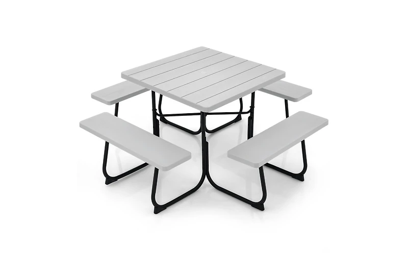 Slickblue Outdoor Picnic Table with 4 Benches and Umbrella Hole