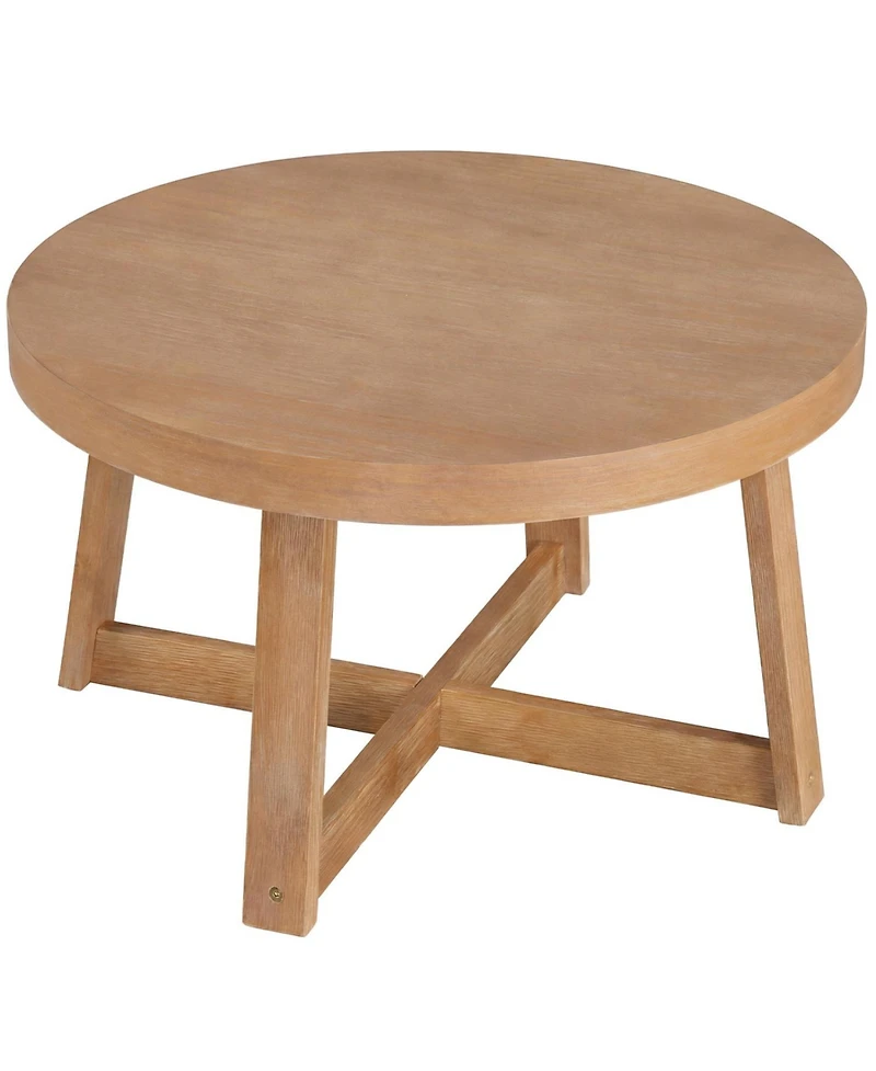 Bring rustic charm and everyday functionality to your living space with this round farmhouse coffee table, designed with sturdy rubber wood legs for added durability and stability. The spacious tabletop provides ample room for drinks, decor, and daily essentials, while the round shape creates a warm, inviting feel and improves flow within your room. The wood elements enhance its cozy farmhouse appeal, making it a perfect fit for a variety of interior styles. Built for long-lasting use, this coffee table combines timeless design with practical performance, serving as a stylish centerpiece for any living room.