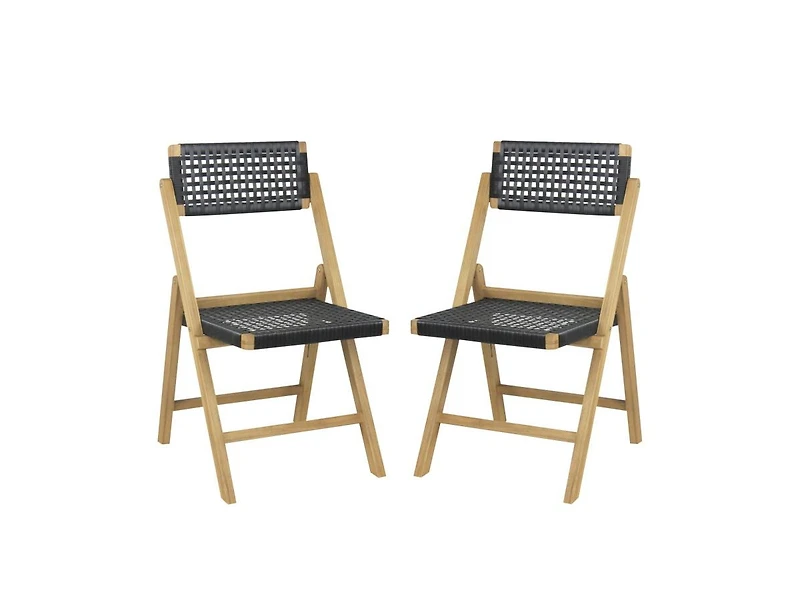 Slickblue Set of 2 Folding Chairs Indonesia Teak Wood Dining Chairs with Woven Rope Seat and Back
