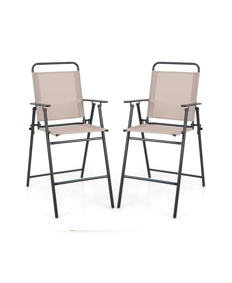 Slickblue Set of 2 Patio Folding Bar-Height Chairs with Armrests and Quick-Drying Seat-Beige in Franklin, TN