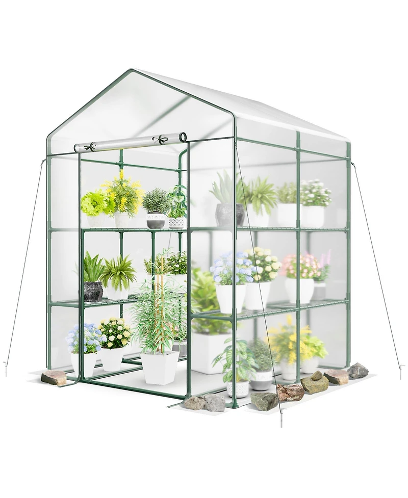 Slickblue Walk-in Greenhouse with 4 Tiers 8 Shelves Pvc Cover Roll-up Zippered Door